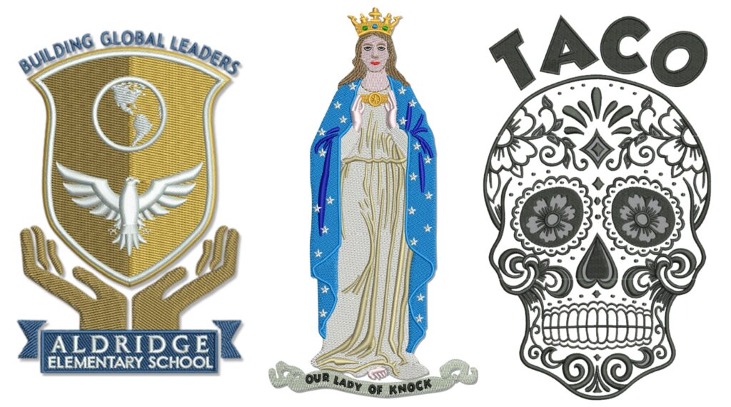 Digitized embroidery files in all major formats: DST, PES, EXP, JEF, VP3, HUS, etc.